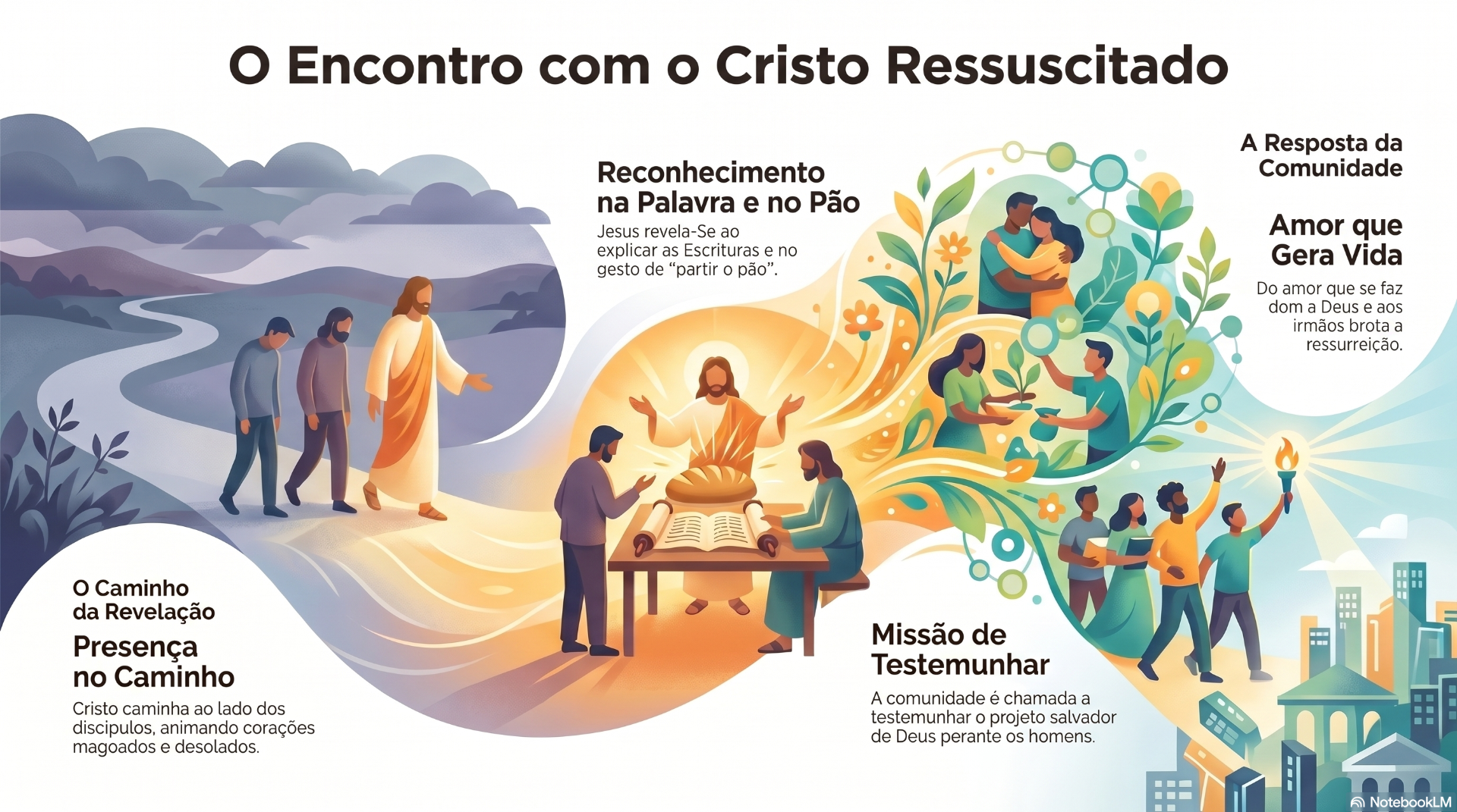 A liturgia deste domingo convida-nos a descobrir esse Cristo vivo que acompanha os homens pelos caminhos do mundo, que com a sua Palavra anima os corações magoados e desolados, que se revela sempre que a comunidade dos discípulos se reúne para "partir o pão"; apela, ainda, a que os discípulos sejam as testemunhas da ressurreição diante dos homens.