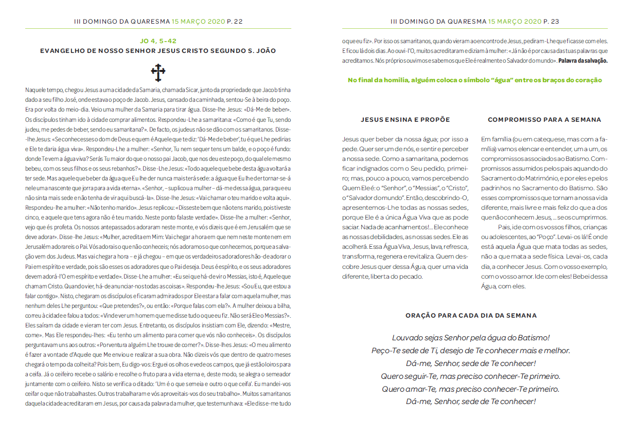 A paróquia de Nossa Senhora de Monserrate propõe a todas as famílias, adolescentes e comunidade paroquial para esta semana do III Domingo da quaresma a reflectirem no evangelho deste domingo para aprofundar e vivê-lo.